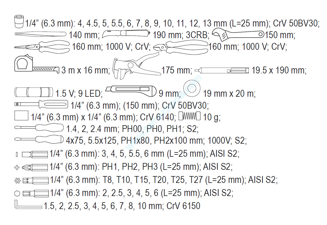 Bộ dùng cụ sửa chữa tổng hợp Yato YT-39009 gồm những công cụ không thể thiếu trong bộ trang thiết bị dụng cụ sửa chữa tại nhà máy, công ty xưởng cơ khí, hoặc sửa chữa tại gia đình, v.v… với nhiều dụng cụ có chức năng.